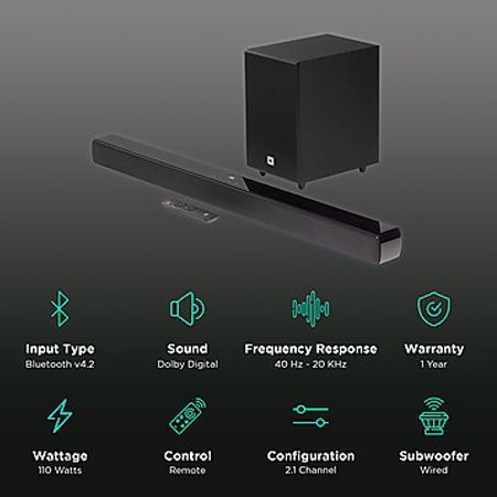 JBL Cinema SB140 2.1 Channel Soundbar 110W with Dolby Digital Embedded, Powered Subwoofer